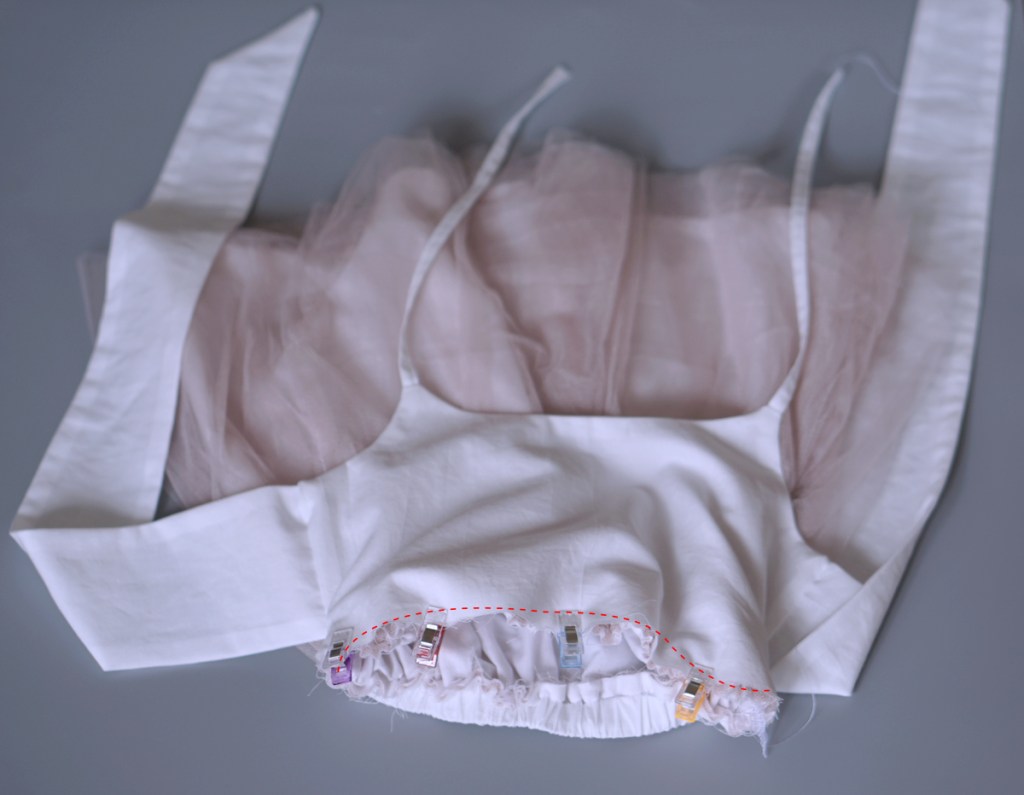 8. Gathering and attaching the remaining skirt.