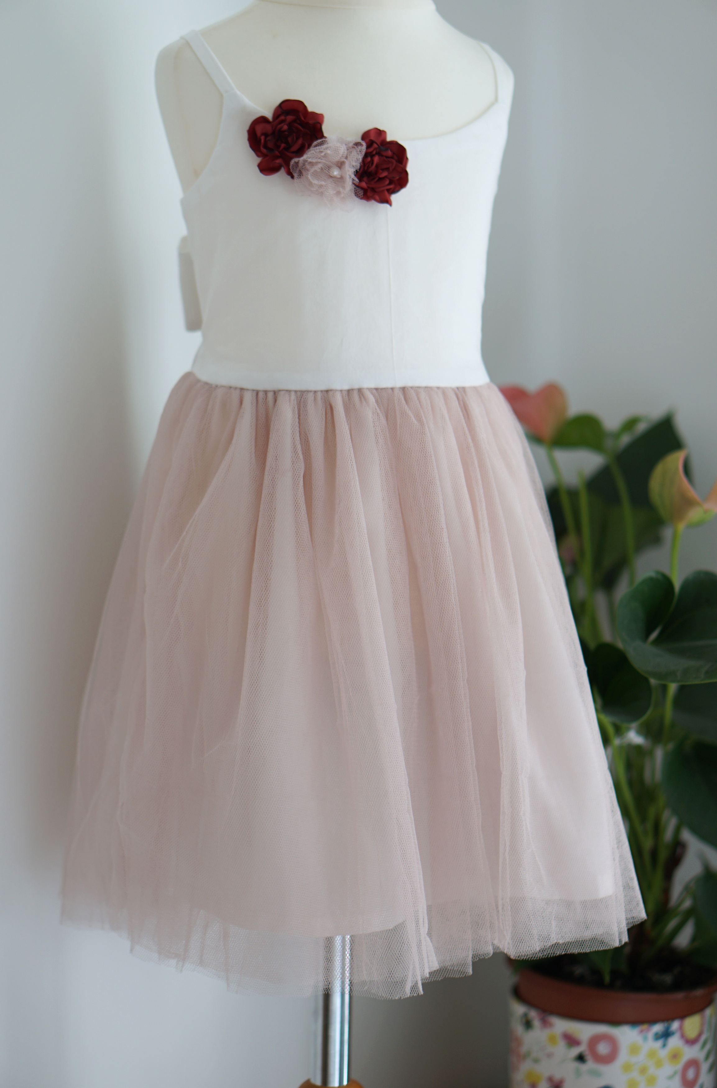 I used some scrap fabric to make some fabric flowers – they can be put on the dress as embellishment or made into matching hairpieces. I used the method in this YouTube tutorial (https://www.youtube.com/watch?v=zUDC8jxqA9c ) and it is really simply to make.