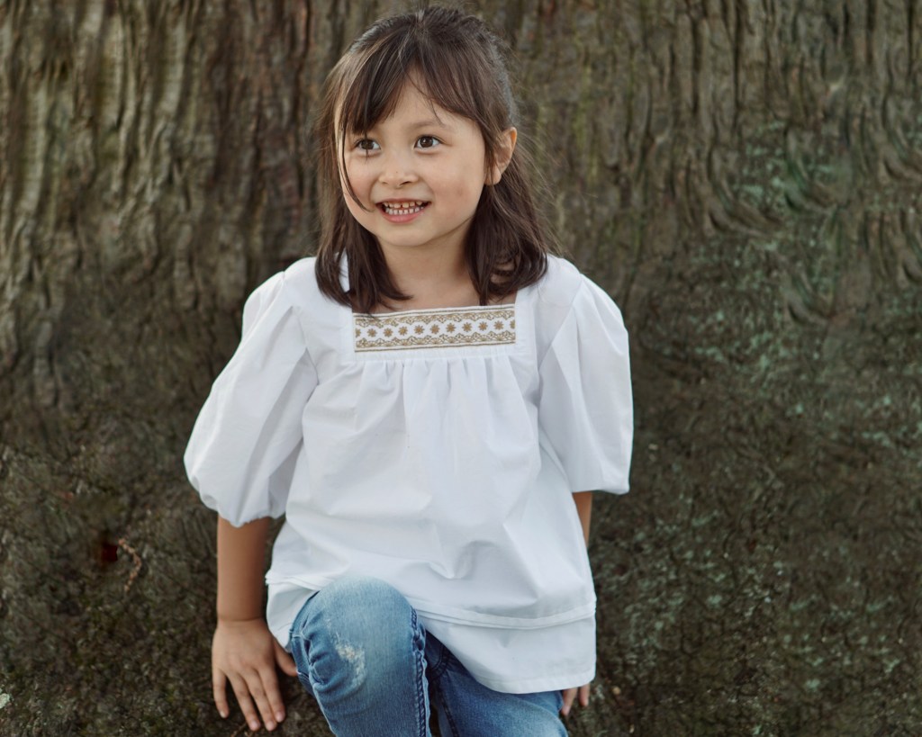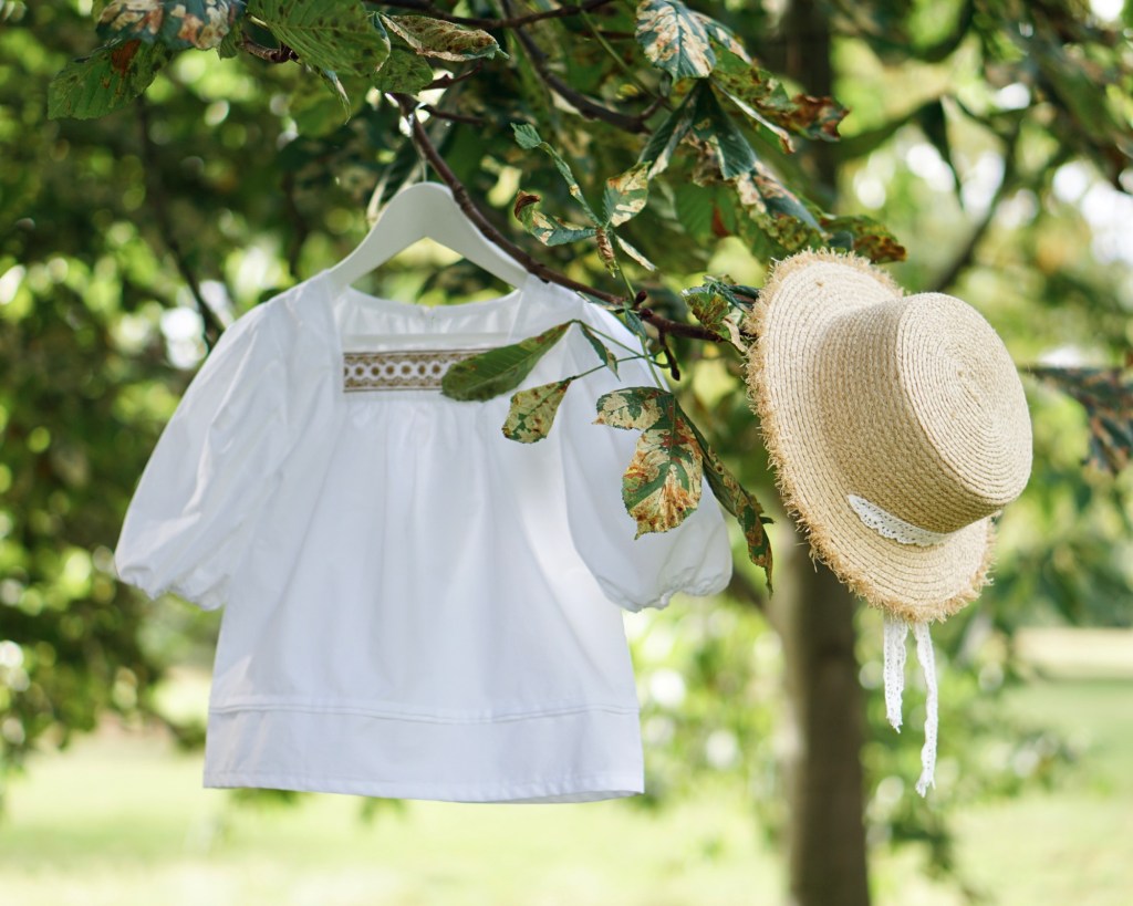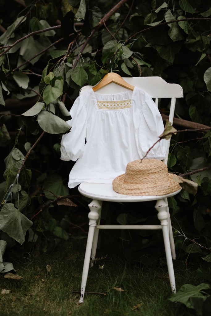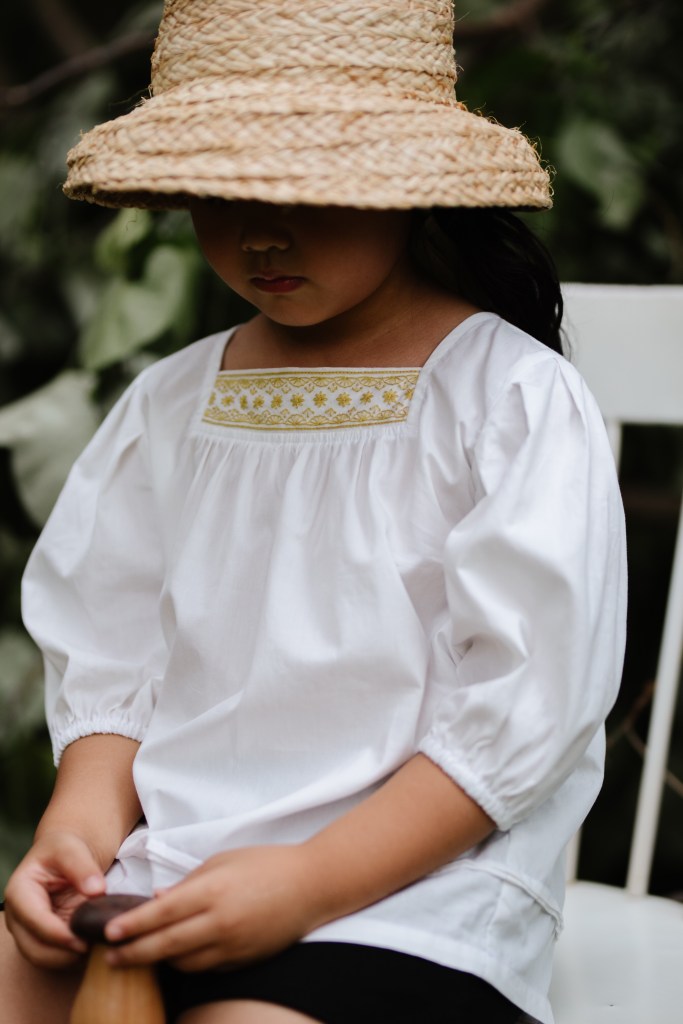 Sula blouse has a loose fit and a simple A-line silhouette. The keyhole opening at the back makes it easy to put up and take off. Featuring pleated puff ¾-length sleeves, decorative embroidery panel in the front, and overlapping pleats at the hem, Sula is going to be a staple in your wardrobe with its modern look and subtle, unique design details.