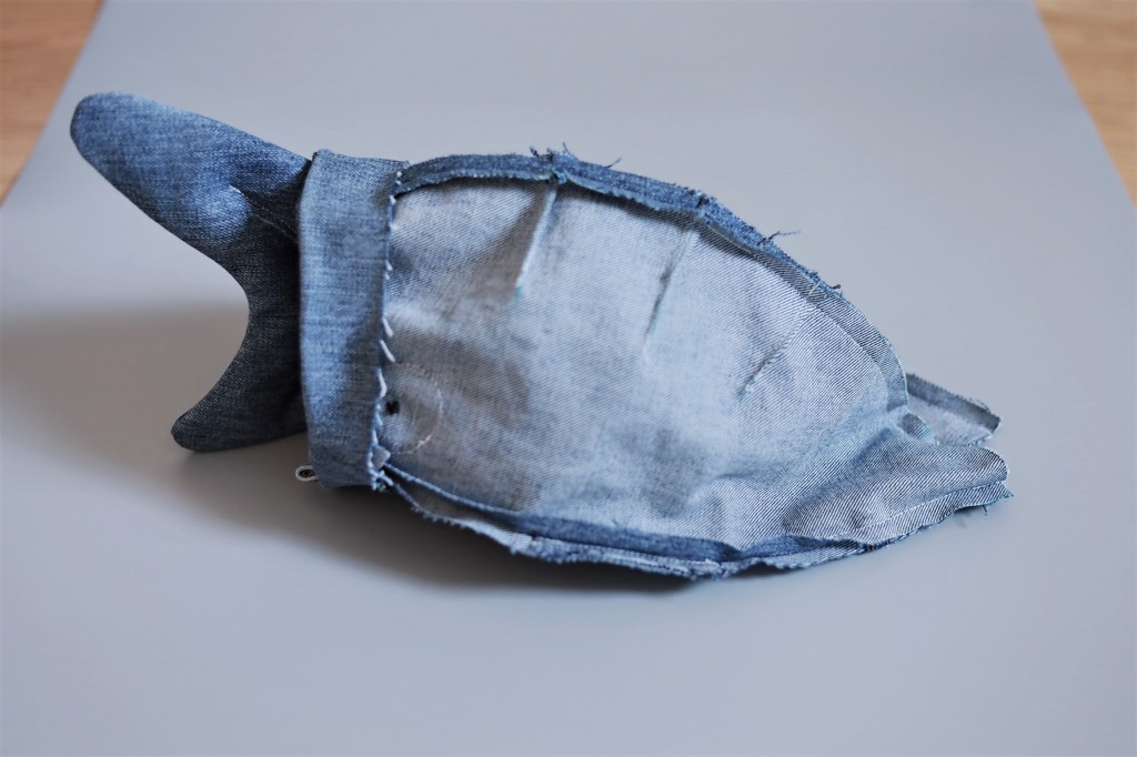 6. Attach the zip (Mummy shark) or finish the opening (baby shark)