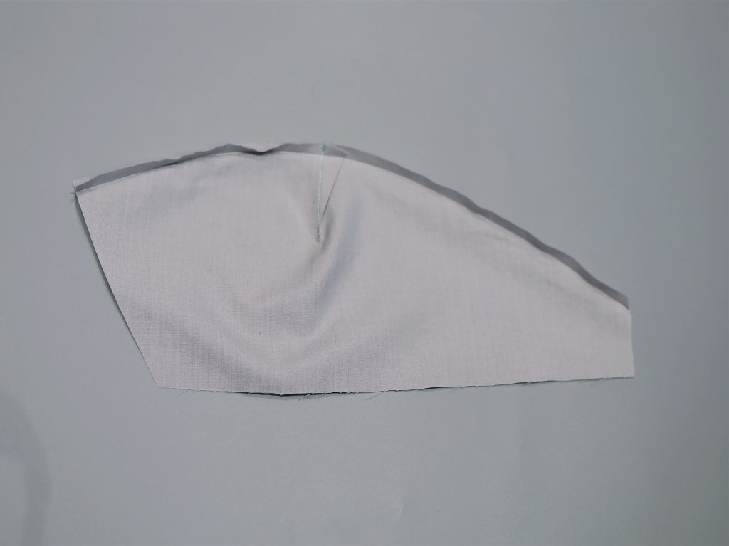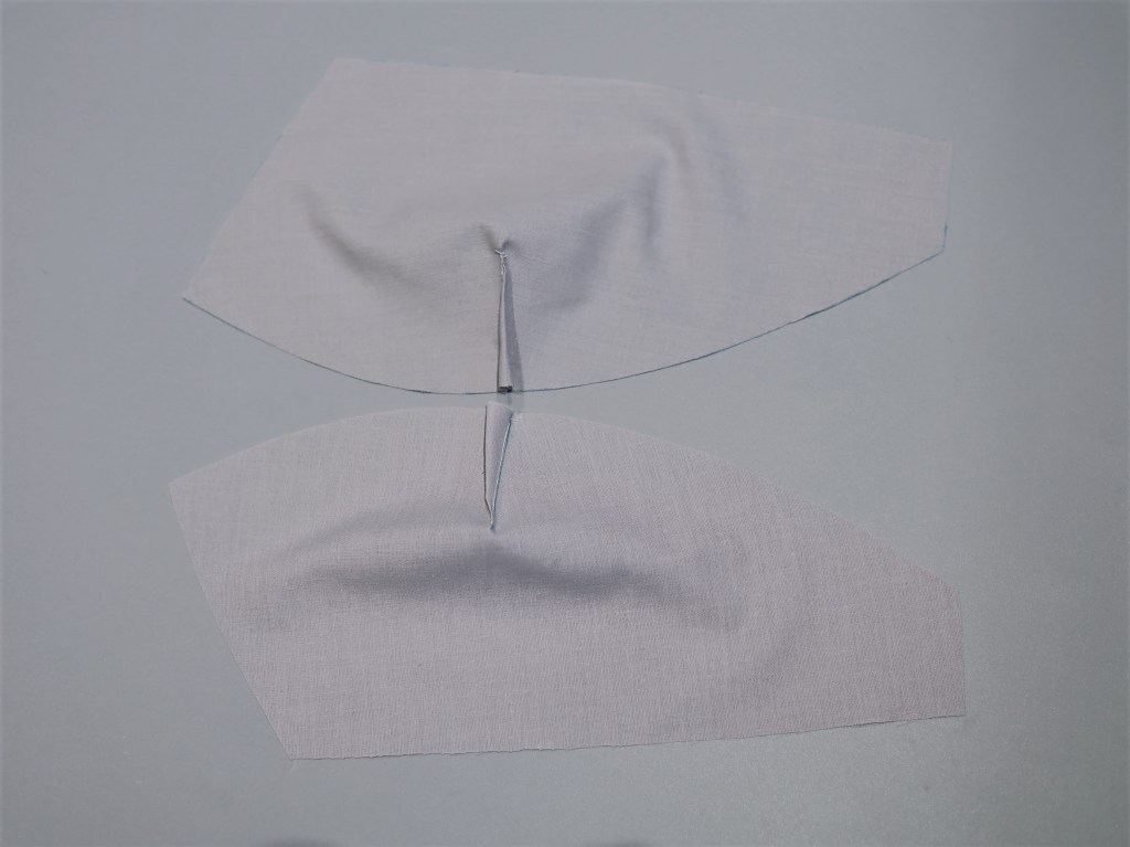 a. Sew the darts on the back lining pieces (H), and iron the dart towards the tail. Place the two back lining pieces (H) together with the right sides touching and the raw edges lining up. Sew along the back curve.