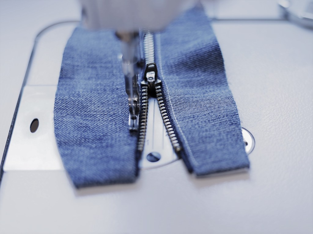 Repeat with the other size of the zip and the lower zip piece (L). When sewing, it might be difficult to pass the pull of the zip. You can either stop there, back stitch, pull the zip to another place, and continue to sew from where you stop; or lift the foot and pull the zip while the needle is still down in the fabric before continue to sew.