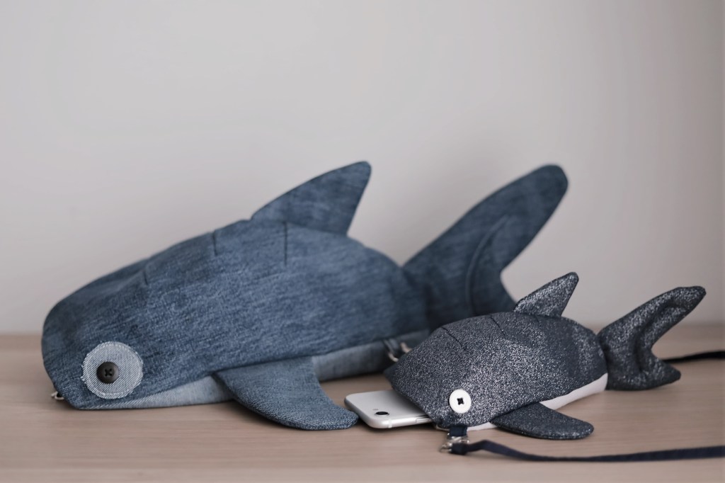 e. Strap(s): Cut one or two long strip(s) from the fabric of your choice. The number and length depend on whether it is backpack (two straps) or crossbody (one strap), and whether it is for grown-up or children. The best thing to do is to use either a measuring tap or a long rope to work out the desired length. The width of the strip = the desired width of the finished strap x 4. (I used 3cm for baby shark and 4.5cm for mummy shark because I only have small size lobster clasps and I need to make sure the straps fit the clasps. )